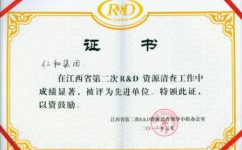 2012年江西省第二次R&D資源清查先進(jìn)單位證書
