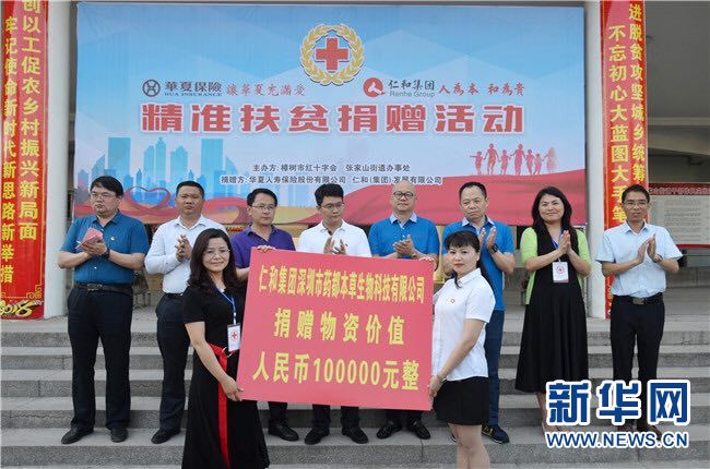 新華網南昌5月17日電(通訊員許國雄 張成)5月15日,仁和集團與合作伙伴華夏人壽保險股份有限公司(以下簡稱華夏人壽)精準扶貧捐贈儀式在江西樟樹市張家山街道辦事處舉行。宜春市紅十字會常務副會長陳愛紅、樟樹市委副書記尹志來、樟樹市政府副市長晏衛華等領導出席。