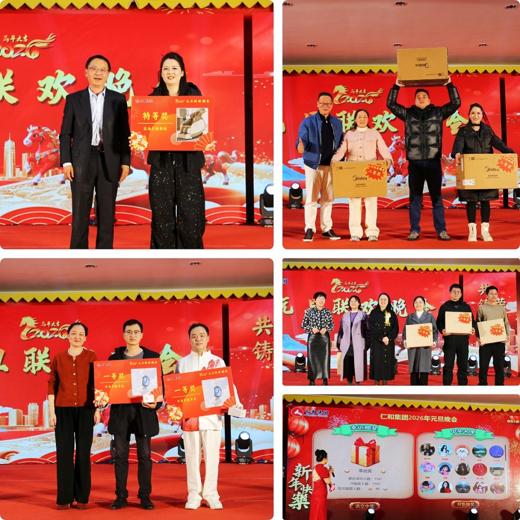 抽獎環節成為晚會的“幸福亮點”。楊總、楊瀟總、肖總精心準備了豐厚獎品,從實用便捷的吹風機,到舒適溫馨的四件套、高效實用的微烤一體機,再到智能便捷的華為手表、舒緩身心的豪華按摩椅,每一份禮品都承載著集團對員工辛勤付出的感謝與新年期許。大家在收獲驚喜的同時,更深深感受到了仁和大家庭的溫暖與關愛。