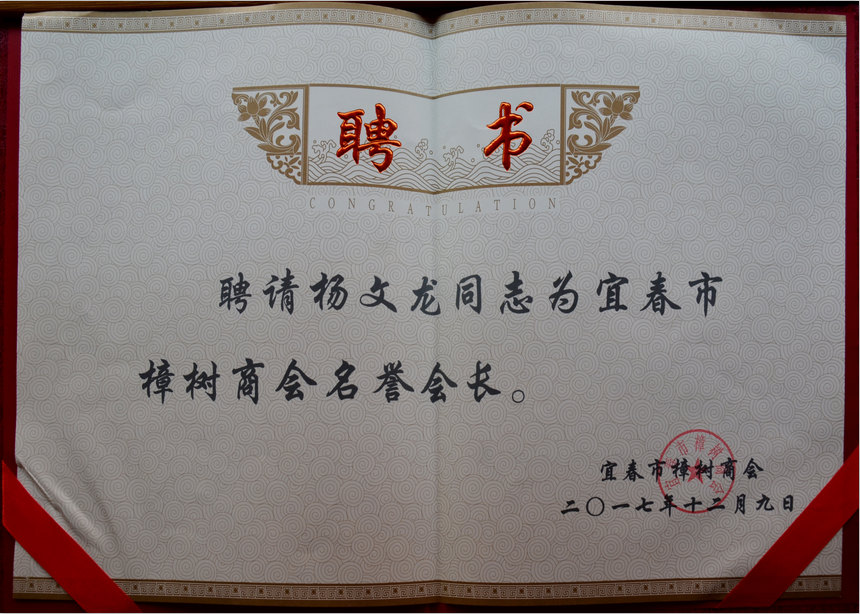 楊總當選宜春樟樹商會名譽會長 聘書 發布時間: 2019年12月18日 16:53:43 閱讀量: 15,972 下一篇:楊總當選宜春樟樹商會名譽會長上一篇:楊文龍董事長被評為2017年度全市“知名企業家”